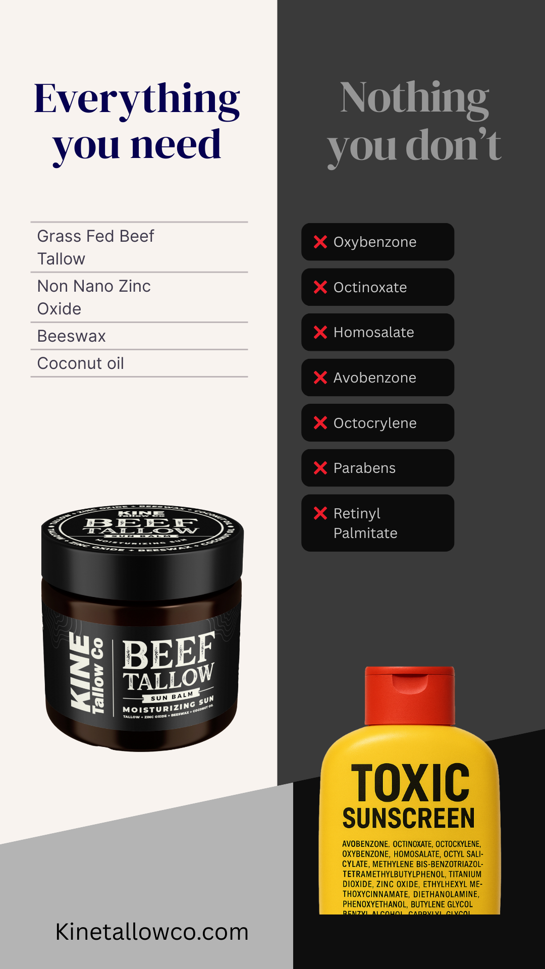 With rich nutrients like vitamins A, D, E, and K, our tallow blends deliver deep hydration and lasting protection—making them a clean, sustainable choice for families across the country. When you choose Kine Tallow Co, you’re choosing American-made craftsmanship, transparency, and trust.